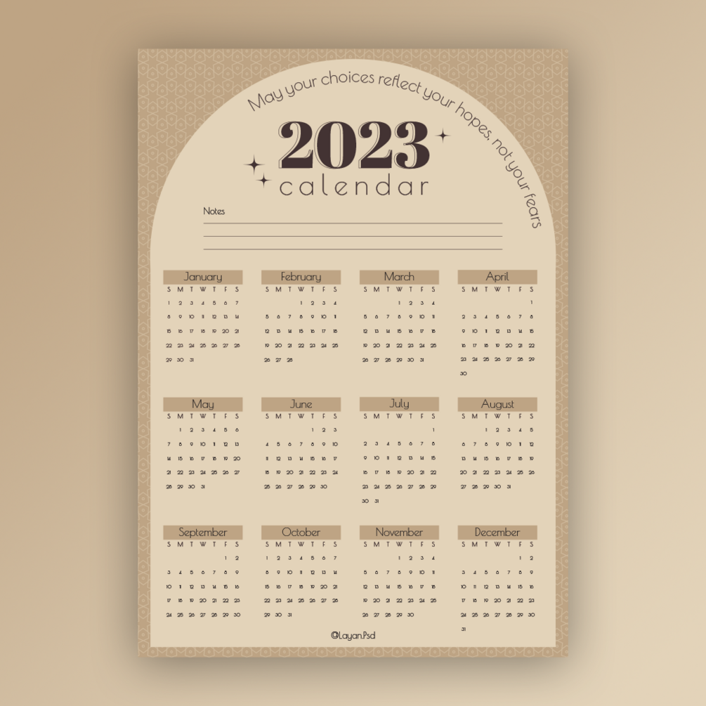 Digital 2023 yearly calendar. It can be printed or used digitally.